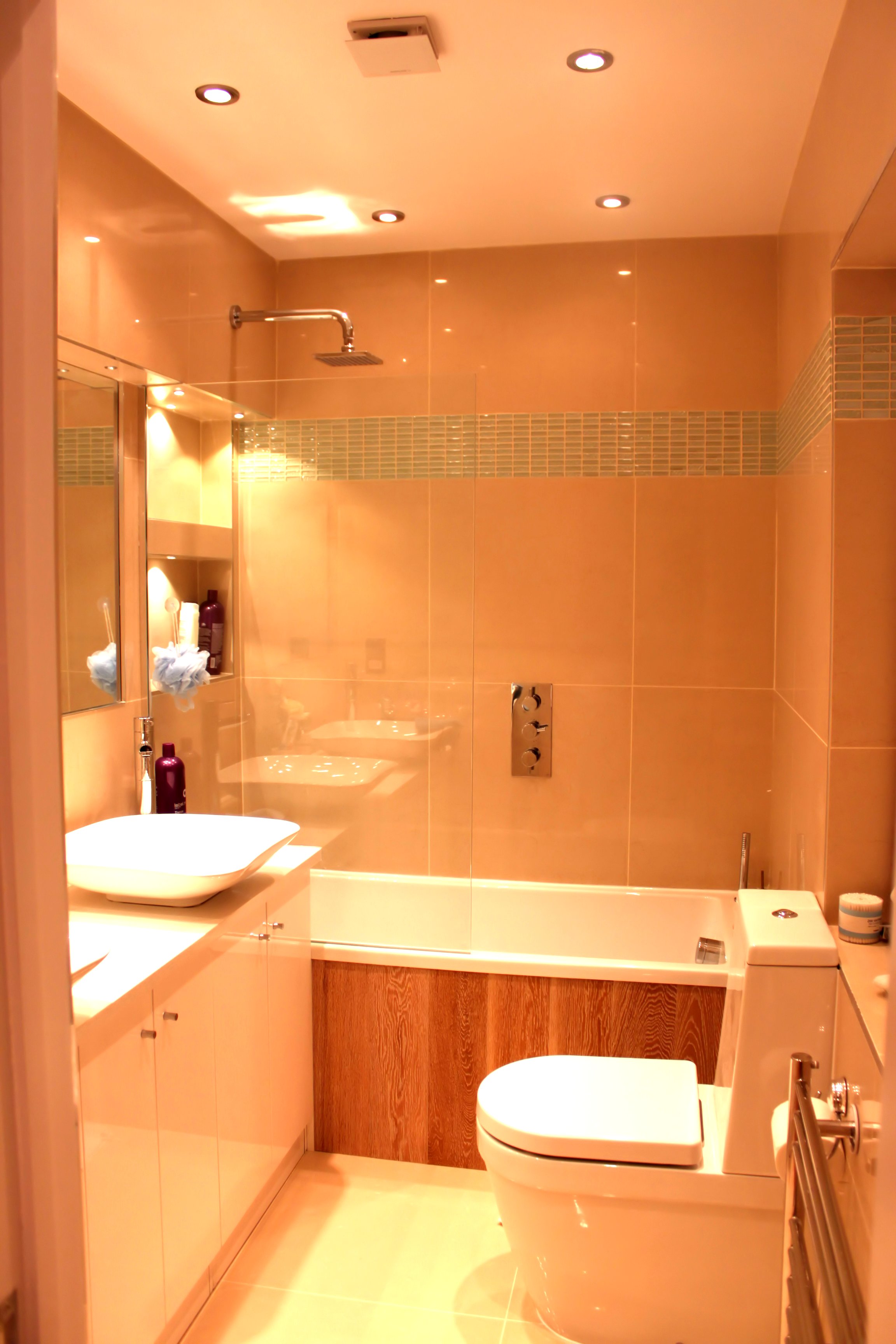 This bathroom designed and constructed by me. The brilliant choice of cololur providing a warm feel from the moment you reach the door.